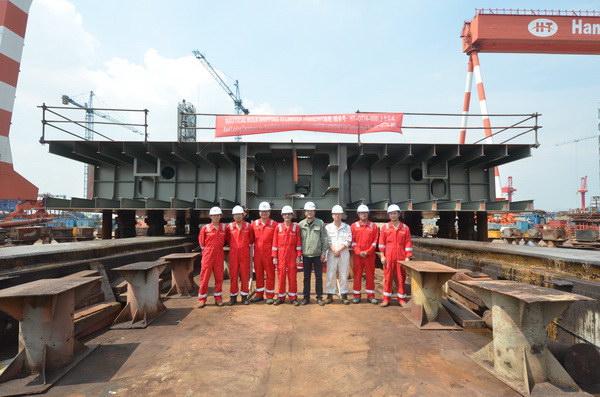 2017年7月19日,韓通為德國船東建造74000噸油輪(船體號(hào):HT-OT74-008)上臺(tái)儀式順利舉行,該船入LR船級(jí)社。公司領(lǐng)導(dǎo)、船東、船級(jí)社代表參加該儀式。
