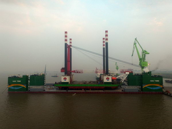 2018年6月5日,我司為南通市海洋水建工程有限公司改造的HY36自升式風(fēng)電安裝船順利下水。該船總長(zhǎng)為89.6m,型寬36m,型深5米,最大作業(yè)水深可達(dá)40m,起重機(jī)能力為350T@31m。該船經(jīng)改造后,可變載荷有所新增,穩(wěn)定性也隨之增強(qiáng),干舷為2.313m,滿足中國(guó)船級(jí)社《海上移動(dòng)平臺(tái)入級(jí)規(guī)范》及《1966年國(guó)際載重線公約》中相關(guān)要求。HY36調(diào)試完工后將于7月中旬進(jìn)入江蘇大豐海域風(fēng)電場(chǎng)作業(yè)。
