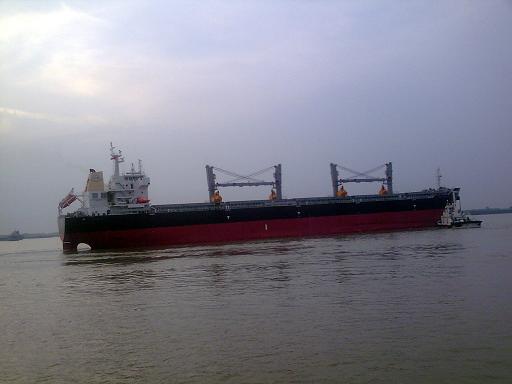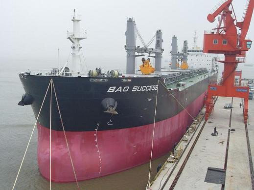 首制57000噸散貨輪在新韓通交船(船號(hào):HT015)