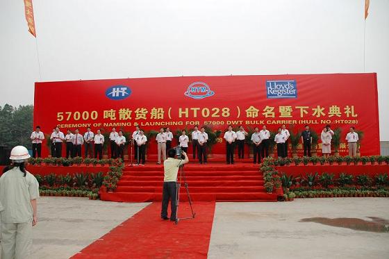 2009年6月10日,位于江蘇省揚(yáng)中市的江蘇新韓通船舶重工有限公司的船臺,迎來了它第一艘57000噸散貨輪(船體號:HT028)的下水典禮,該散貨輪是為新加坡船東Bao Wealth Shipping Pte. Ltd 建造,入英國勞氏船級社。新韓通船舶重工是由江蘇韓通船舶重工有限公司投資成立的一個大中型船舶修造企業(yè),原名江蘇潤昌船舶重工有限公司,于2009年5月正式更名。