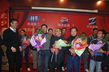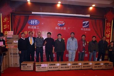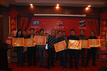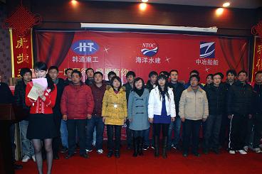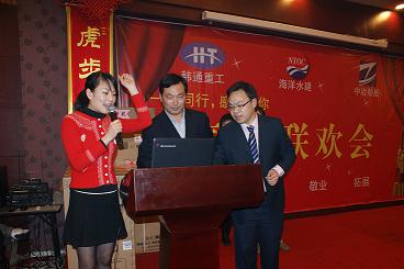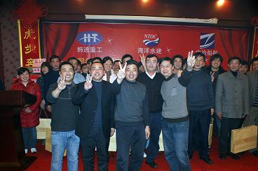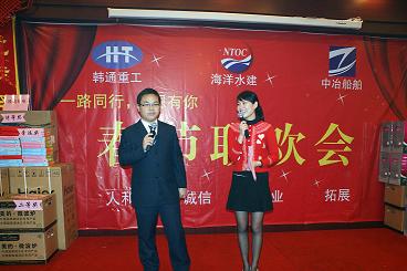 2010年2月8日晚,北辰大酒店宴會(huì)大廳燈火璀璨,流光溢彩,由韓通重工、海洋水建、中冶船舶、文景大酒店共同舉辦的,以“一路同行,感恩有你”為主題的迎春聯(lián)歡晚會(huì)正在舉行。歡快的音樂(lè)縈繞在耳畔,滿場(chǎng)的紅色襯托出喜慶的氣氛,讓整個(gè)會(huì)場(chǎng)籠罩在歡騰之中。晚會(huì)首先由孟董事長(zhǎng)及四家公司高層領(lǐng)導(dǎo)進(jìn)行了新春賀詞,接著備受矚目的優(yōu)秀員工、優(yōu)秀大學(xué)生、優(yōu)秀班組、優(yōu)秀施工單位和優(yōu)秀施工班組獎(jiǎng)項(xiàng)在晚會(huì)上相繼頒出,此時(shí)在各工作崗位上辛勤工作了一年的同事們成了彩光燈下最耀眼的明星。晚會(huì)中現(xiàn)場(chǎng)抽獎(jiǎng)讓晚會(huì)氣氛再次高漲,而特等獎(jiǎng)液晶彩電的抽取更是將晚會(huì)的氣氛推向了最高點(diǎn)。大家歡欣鼓舞,熱情高漲,都沉浸在歡樂(lè)之中。