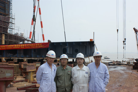 我司為大新控股有限公司建造的57000噸散貨輪(船體號(hào)HT049)于2010年5月31日下午13:30在我司1號(hào)船臺(tái)舉行了上臺(tái)儀式。該船入CCS船級(jí)社。