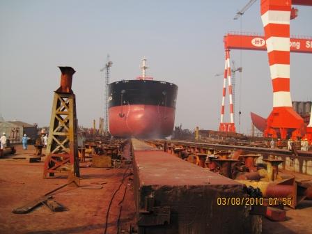 我司為寶源船東建造的57000噸散貨輪(船體號HT067)于2010年8月3日早上7:45在我司2號船臺舉行下水儀式,該船入BV,計劃于2010年9月30日交船。 武亦文總經(jīng)理及船東代表參加了該儀式。
