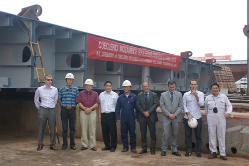 儀式,該船入意大利船級(jí)社,代理公司為蘇美達(dá)貿(mào)易公司。HT080為該項(xiàng)目系列船中的第1條,將于2011年交付船東。陳興副總,船東代表及船