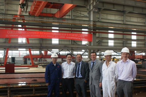我司為意大利船東COECLERICI集團(tuán)建造的55000噸自卸散貨船(船體號(hào)HT081)于2010年9月16日上午10:30在我司船體車(chē)間舉行開(kāi)工儀式,該船入意大利船級(jí)社,代理公司為蘇美達(dá)貿(mào)易公司。HT081為該項(xiàng)目系列船中的第2條,將于2012年交付船東。陳興副總,船東代表及船級(jí)社代表參加該儀式。開(kāi)工點(diǎn)火后,共同簽署了開(kāi)工文件。