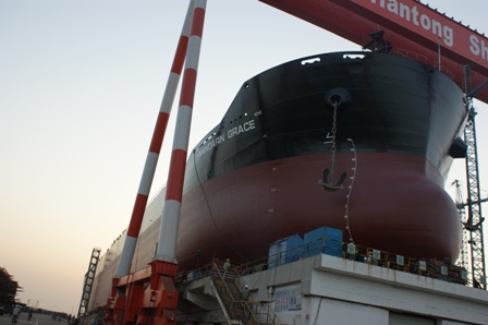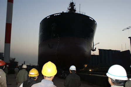 我司為大新船東建造的57000噸散貨輪(船體號HT071)于2010年12月8日下午16:30在我司1號船臺舉行下水儀式,該船入ABS,計劃于2011年春節(jié)前交船。李繼念副總及船東船檢代表參加了該儀式。
