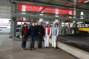 建造的57000噸散貨輪(船體號(hào):HT091)在我司新船體車間舉行開工儀式,該船入LR船級(jí)社,計(jì)劃于2011年11月30日交船。陳林軍常務(wù)副總、及船東,船級(jí)社代表參加了該儀式。