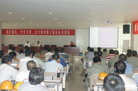 2011年6月4日下午,在公司月度大會(huì)之際,韓通重工第三屆“安全月”活動(dòng)動(dòng)員大會(huì)在行政樓六樓會(huì)議室召開(kāi)。公司主管以上人員、施工隊(duì)駐韓通負(fù)責(zé)人及現(xiàn)場(chǎng)管理人員參加了這次動(dòng)員大會(huì)。會(huì)上成立了“安全月”活動(dòng)小組,由陳林軍常務(wù)副總擔(dān)任此次活動(dòng)的組長(zhǎng),負(fù)責(zé)活動(dòng)的推行、指導(dǎo)和監(jiān)督;安環(huán)部部長(zhǎng)曾憲章?lián)胃苯M長(zhǎng),負(fù)責(zé)“安全月”活動(dòng)的整體策劃、組織、實(shí)施和跟進(jìn)。動(dòng)員會(huì)上,安環(huán)部曾部長(zhǎng)對(duì)第三屆“安全月”活動(dòng)策劃書(shū)及活動(dòng)方案進(jìn)行講解,讓大家了解到此次活動(dòng)的目標(biāo)及內(nèi)容。還對(duì)即將在第三屆“安全月”活動(dòng)中開(kāi)始推行的“1+3”安全監(jiān)控體系進(jìn)行解讀,讓大家知道什么是“1+3”體系,為什么要推行“1+3”體系,及在推行“1+3”體系的時(shí)候我們要做些什么。貫述了“安全責(zé)任,重在落實(shí)”的安全月主題精神,體現(xiàn)了“人人懂安全,人人會(huì)安全,人人能安全”氛圍。讓大家都參與到我們的“安全月”活動(dòng)中來(lái),穩(wěn)打穩(wěn)扎,步步為營(yíng),全面落實(shí)第三屆“安全月”活動(dòng)!