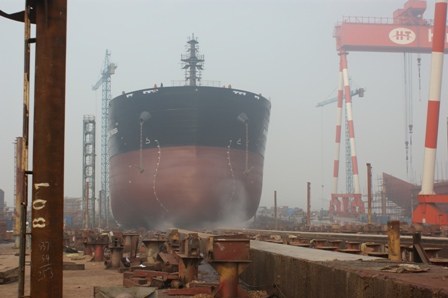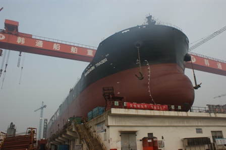 2011年7月6日,我司為大新建造的57000DWT散貨輪(HT072)在韓通2號船臺成功下水,該船入ABS船級社。陳林軍常務(wù)副總,李繼念副總,李泰然總助,船東代表及船級社代表參加該儀式。