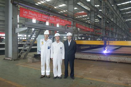 2011年10月24日上午10:00,我司為Eagle Bulk船東建造的57000噸散貨輪(船體號:HT096)開工儀式在韓通新船體車間順利舉行,該船入LR船級社。潘學(xué)軍副總及船東、船級社代表參加了該儀式。開工點火后,三方在韓通會議室簽署了開工文件。