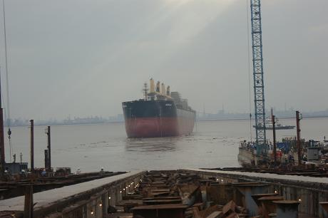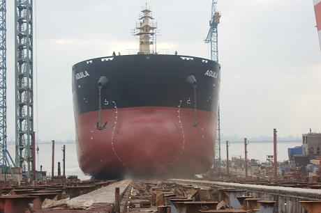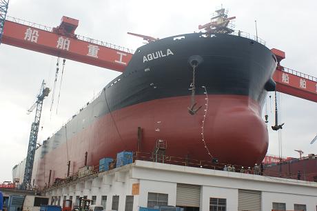 2011年10月26日下午3:15,我司為Eagle Bulk船東建造的第一艘57000噸散貨輪(HT090)在韓通3號船臺成功下水,該船入LR船級社。陳林軍常務副總、李繼念副總、潘學軍副總及船東代表及船級社代表參加了該儀式。