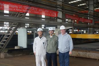 2011年10月31日,我司為Eagle Bulk船東建造的57000噸散貨輪(船體號(hào):HT097)開(kāi)工儀式在韓通新船體車間順利舉行,該船入LR船級(jí)社。潘學(xué)軍副總及船東、船級(jí)社代表參加了該儀式。