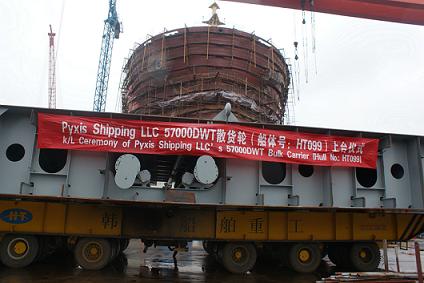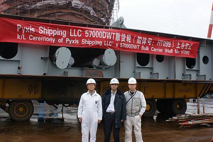 我司為Eagle Bulk船東建造的57000DWT散貨輪(船體號:HT099)于2011年12月8日上午10:00在我司1號船臺舉行了上臺儀式,該船入LR船級社。潘學(xué)軍副總及船東船檢代表參加了該儀式。