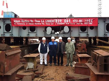 我司為 HHI 船東建造的57000DWT散貨輪(船體號(hào):HT57-109)于2011年12月15日上午10:00在我司1號(hào)船臺(tái)舉行了上臺(tái)儀式,該船入KR船級(jí)社。李繼念副總及船東船檢代表參加了該儀式。