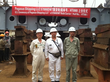 我司為Eagle船東建造的57000DWT散貨輪(船體號:HT098)于2012年6月8日在我司1號船臺舉行了上臺儀式,該船入LR船級社。鄭錫山副總經(jīng)理及船東、船檢參加該儀式。