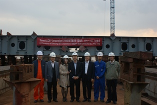 我司為韓國三星船東建造的57000DWT散貨輪(船體號:HT57-116)于2012年11月2日在我司2號船臺舉行了上臺儀式,該船入KR船級社。潘學軍副總經理及船東、船檢參加該儀式。