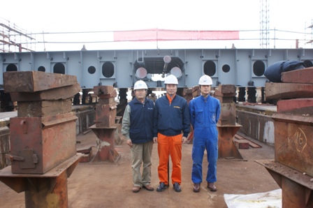 我司為韓國(guó)三星船東建造的57000DWT散貨輪(船體號(hào):HT57-117)于2012年12月18日在我司1號(hào)船臺(tái)舉行了上臺(tái)儀式,該船入KR船級(jí)社。李繼念副總經(jīng)理及船東、船檢參加該儀式。