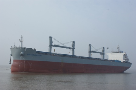 我司為日新船東建造的首艘64000噸系列散貨輪(船體號:HT64-130)提前15天達到了交船狀態(tài),2014年4月18日在我司碼頭舉行了交船儀式。該船入BV船級社。