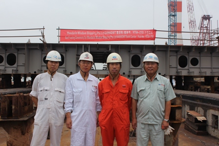 我司為大新船東建造的64000DWT散貨輪(船體號(hào):HT64-210)于2014年8月18日在我司3號(hào)船臺(tái)舉行了上臺(tái)儀式,該船入BV船級(jí)社。周義慶副總經(jīng)理及船東、船檢參加該儀式。