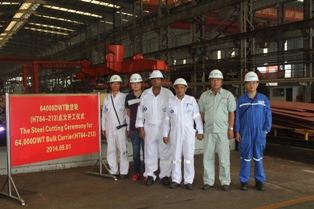 2014年9月1日,我司為FLEET 船東建造的64000噸散貨輪(船體號:HT64-231)開工儀式在韓通新船體車間順利舉行,該船入DNV.GL船級社。周義慶副總經(jīng)理及船東、船檢代表參加該儀式。