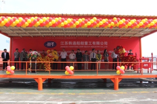 我司為寶源建造的64000噸散貨輪(HT64-162)達(dá)到了交船狀態(tài),2014年9月25日在我司碼頭舉行了隆重的交船儀式,該船入DNV.GL。交船儀式開始前船東船檢代表等參觀了該船,并給予很高的評價(jià)。2014年9月26日該船駛離韓通碼頭,至此,該船提前52天成功交付。