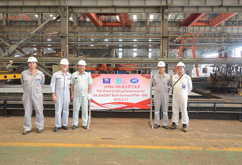 2015年8月17日,韓通為CONTI建造的64000噸散貨船(船體號(hào):HT64-180)開(kāi)工儀式順利舉行,該船入LR 船級(jí)社。公司領(lǐng)導(dǎo)、船東、船級(jí)社代表參加該儀式。