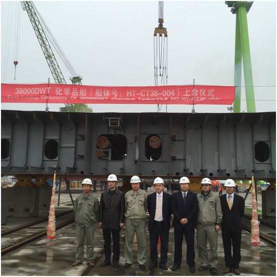 2015年11月19日,韓通為中化船務(wù)建造的38000噸不銹鋼化學(xué)品船(船體號(hào):HT-CT38-004)上臺(tái)儀式順利舉行,該船入LR 和CCS船級(jí)社。公司領(lǐng)導(dǎo)、船東、船級(jí)社代表參加該儀式。