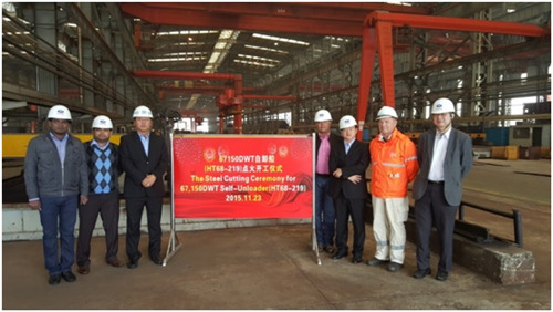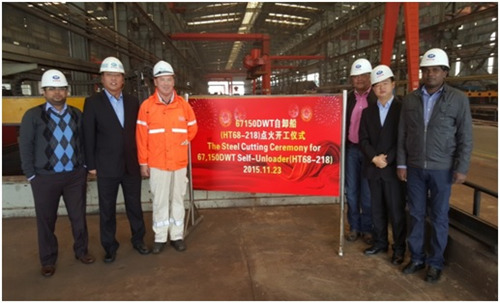 2015年11月23日,韓通為Vulica船東建造2條68000噸自卸船(船體號:HT68-218,HT68-219)同日開工,且順利舉行開工儀式,該船入LR 船級社。公司領(lǐng)導(dǎo)、船東、船級社代表參加該儀式。