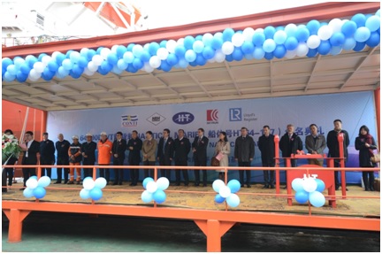 2015年11月25日,我司為CONTI公司建造的64000噸散貨船(船體號(hào):HT64-157)舉行命名儀式,該船入LR船級(jí)社。公司領(lǐng)導(dǎo)、船東、船檢、貿(mào)易公司代表參加該儀式。