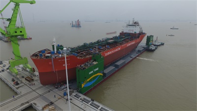 2016年1月6日 我司為香港金威航運建造的38K不銹鋼化學品船(船體號: (HT-CT38-001)成功舉行下水儀式, 本次下水采用液壓小車及半潛駁平臺下水方式。